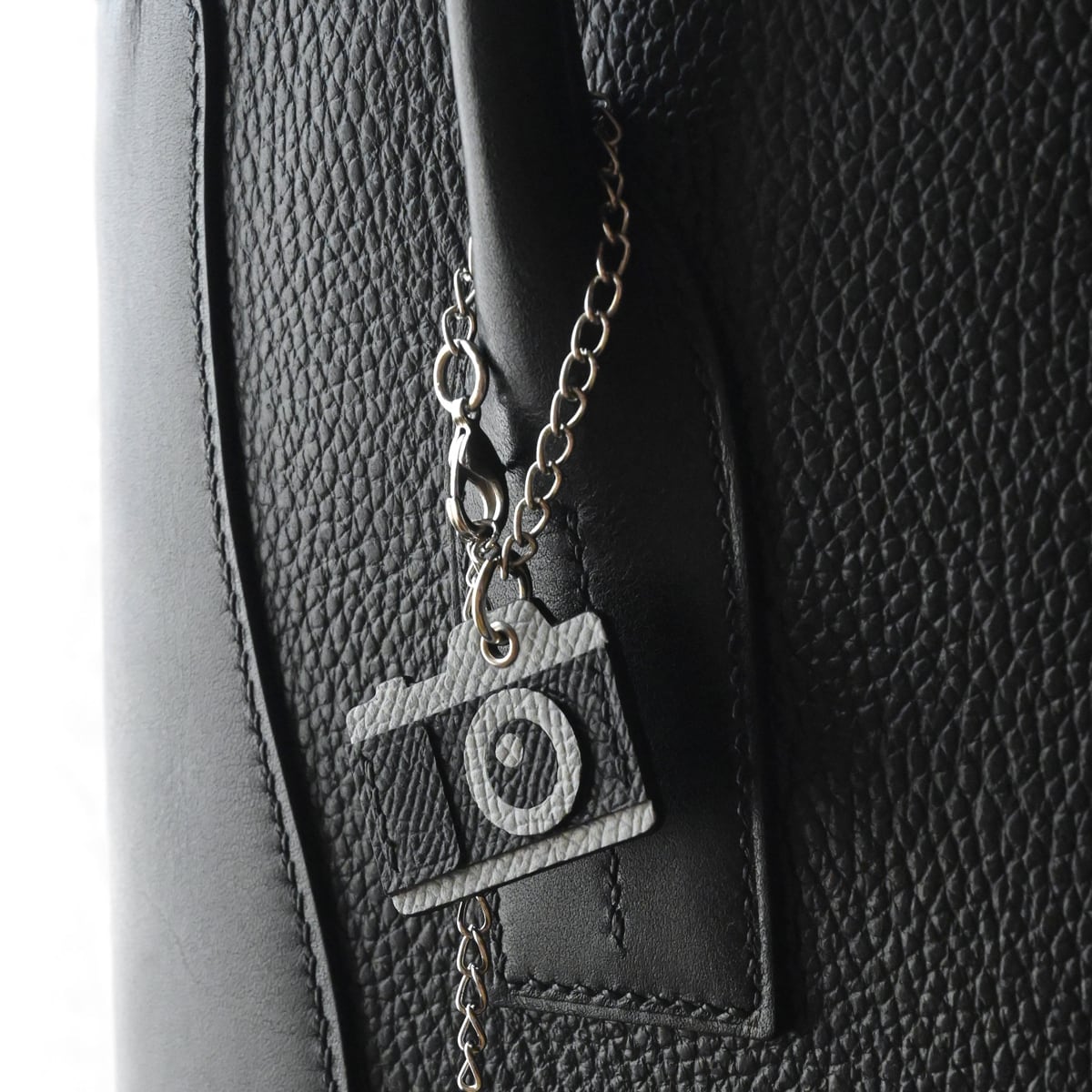 フレンチカーフレザーにて仕立てた“手縫い仕立てのカメラ型キーチェーン”です。