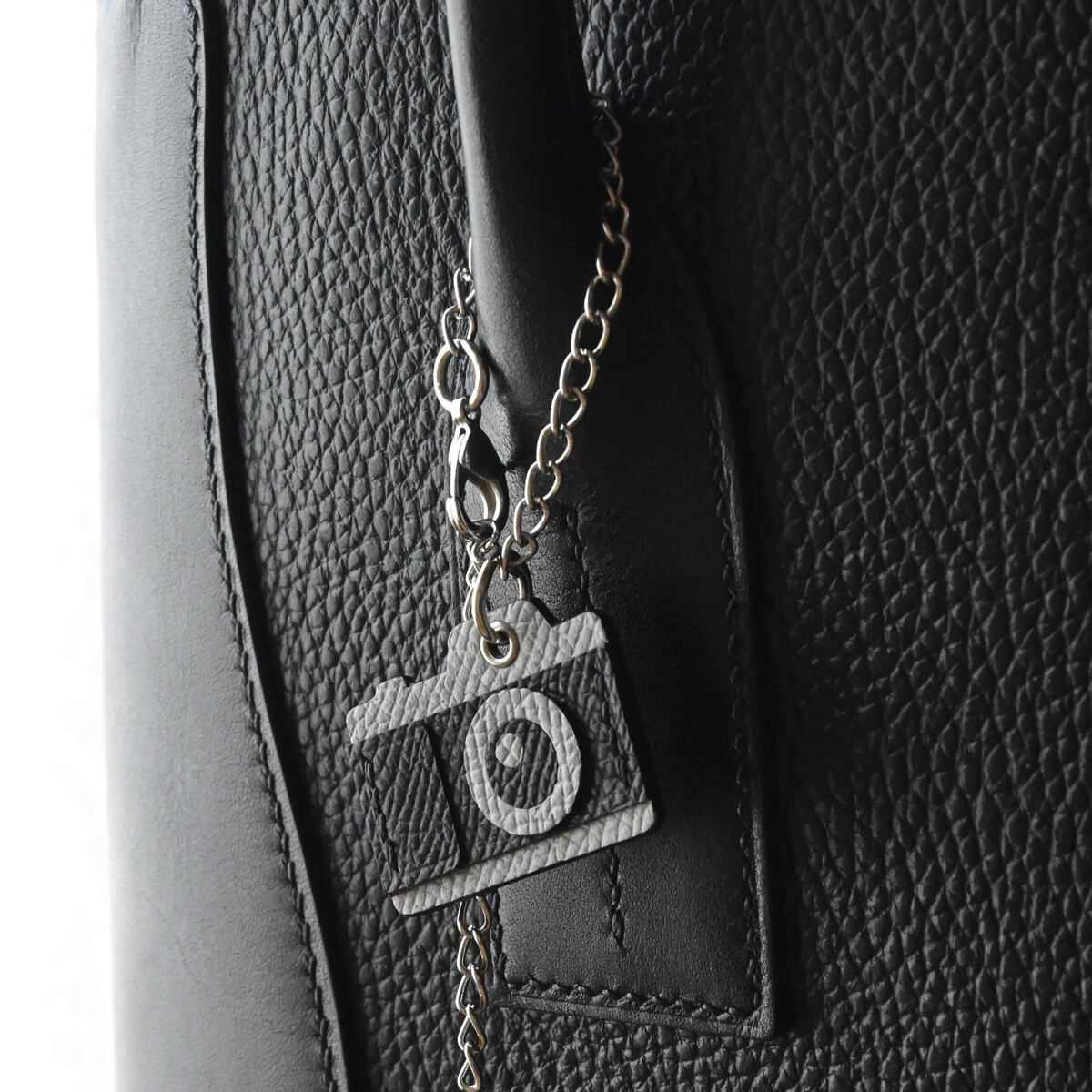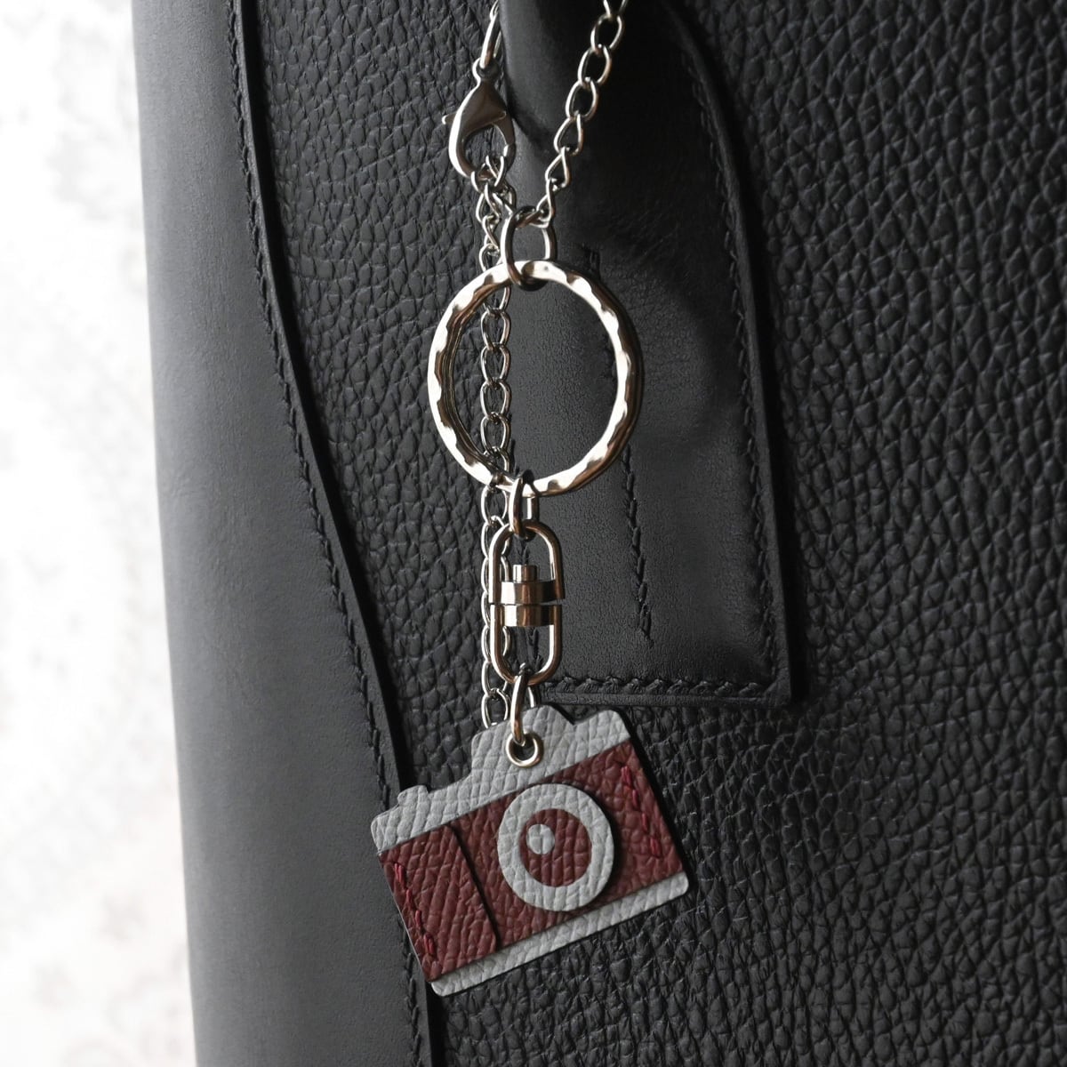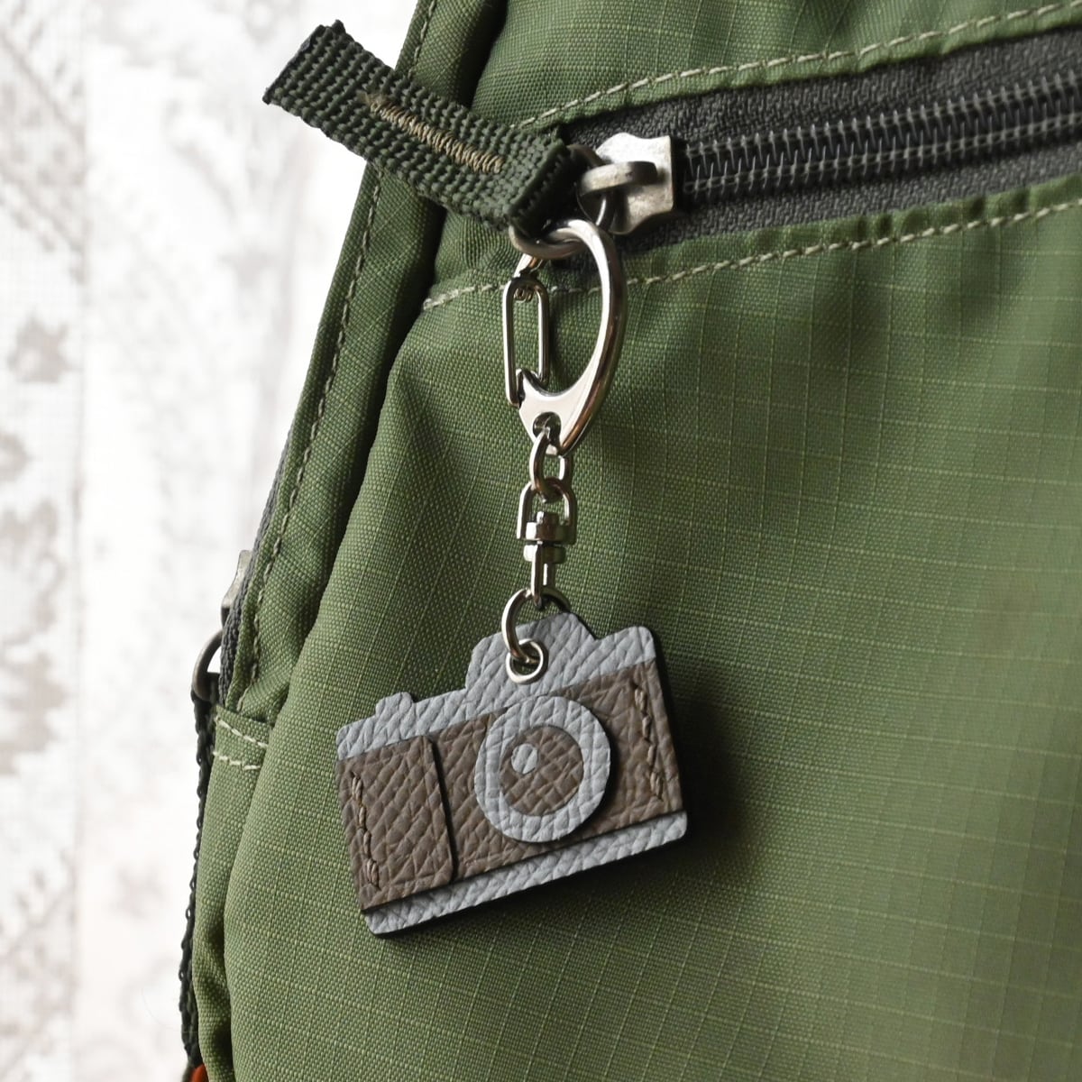 手縫い仕立てのカメラ型キーチェーン フレンチカーフレザー