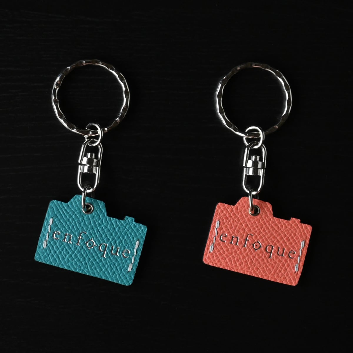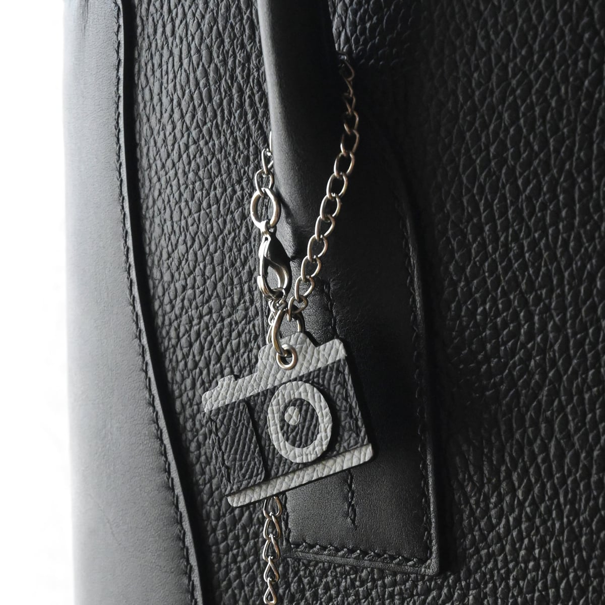 フレンチカーフレザーにて仕立てた“手縫い仕立てのカメラ型キーチェーン”です。