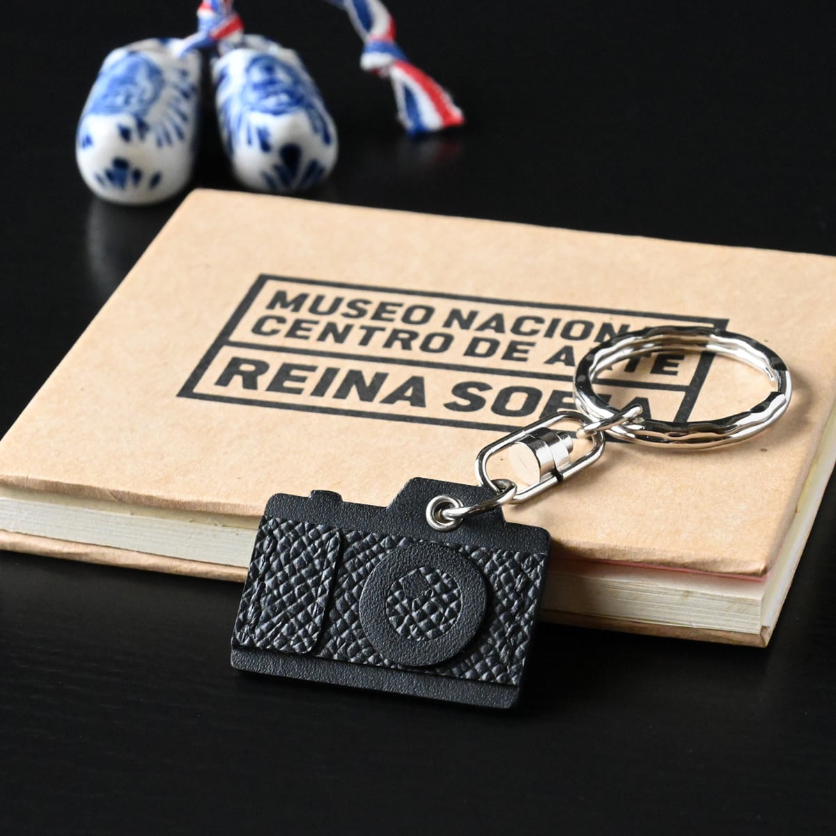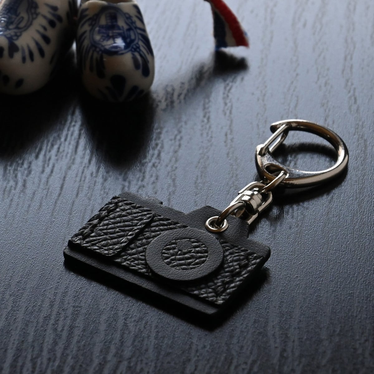 手縫い仕立てのカメラ型キーチェーン 【ブラックver】フレンチカーフレザー
