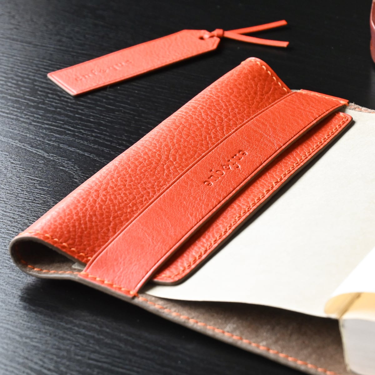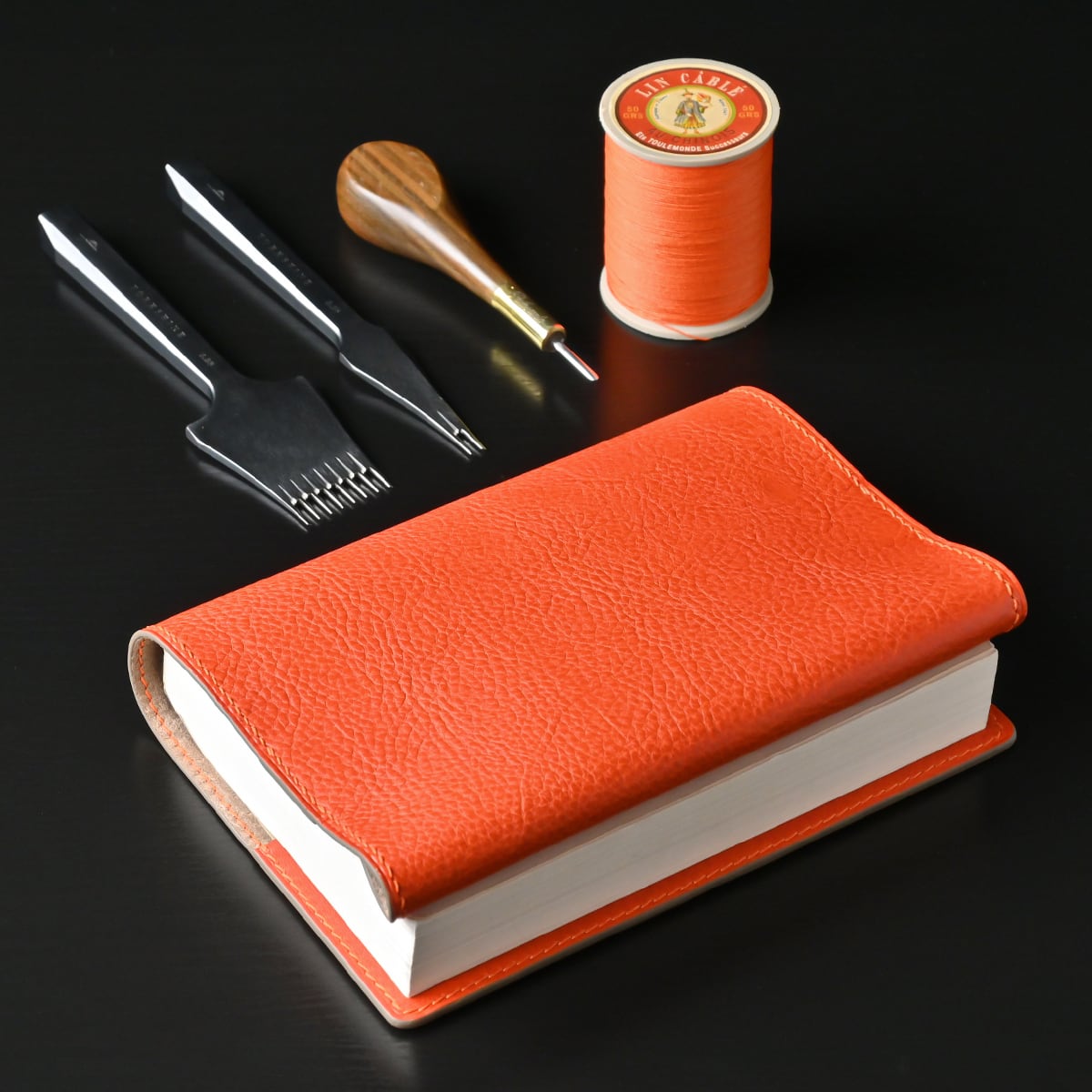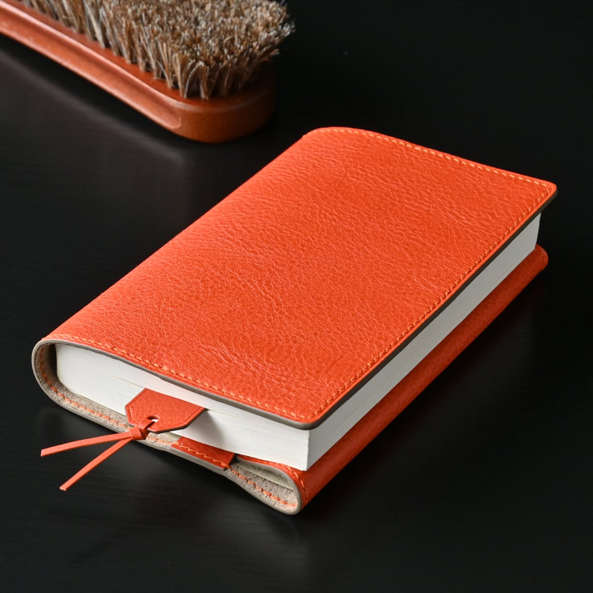 手縫い仕立てのブックカバー 文庫本サイズ イタリアンレザー オレンジ