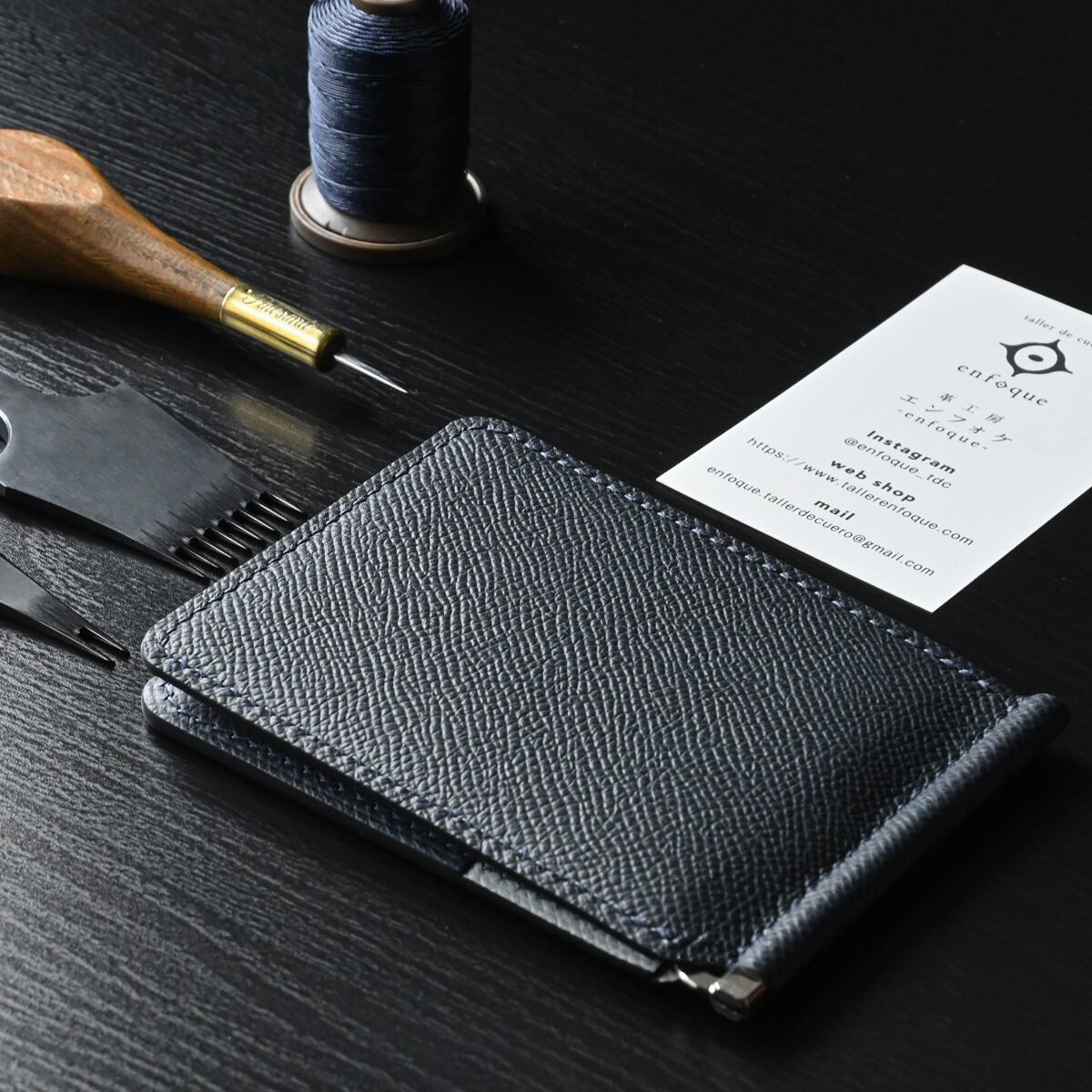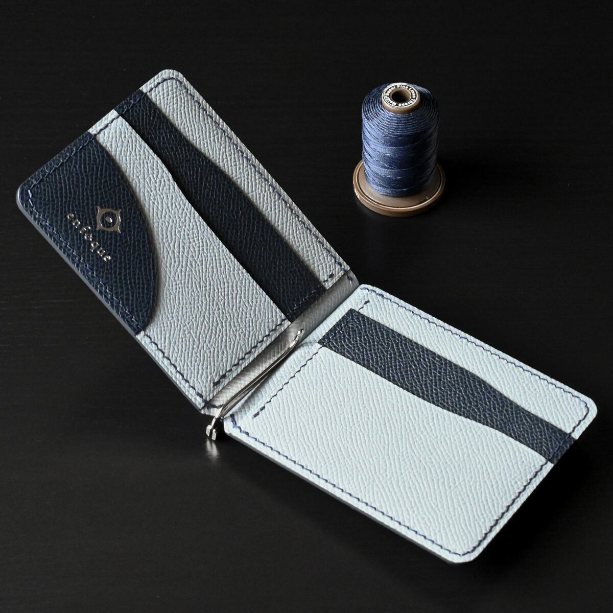 手縫い仕立てのマネークリップ財布 フレンチカーフレザー
