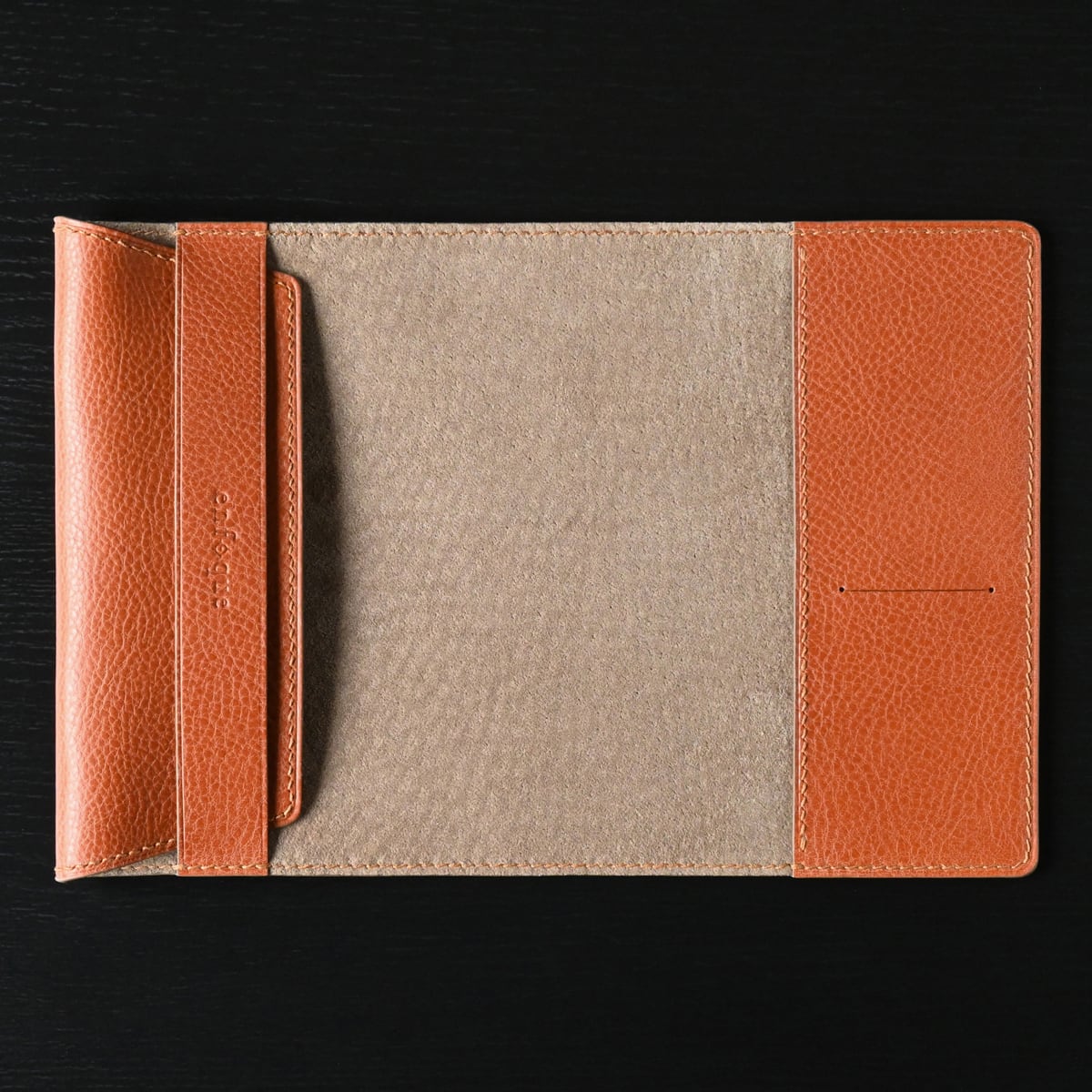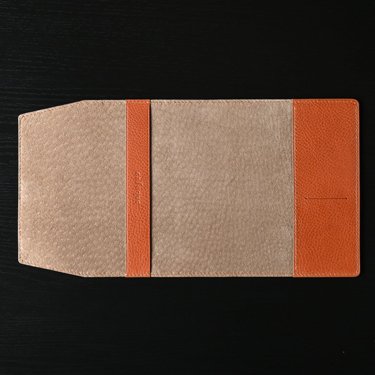 オモテの革にイタリアンレザー 、ウラにピッグスエードを使用し、手縫いにて仕立てたブックカバー "文庫本サイズ"です。