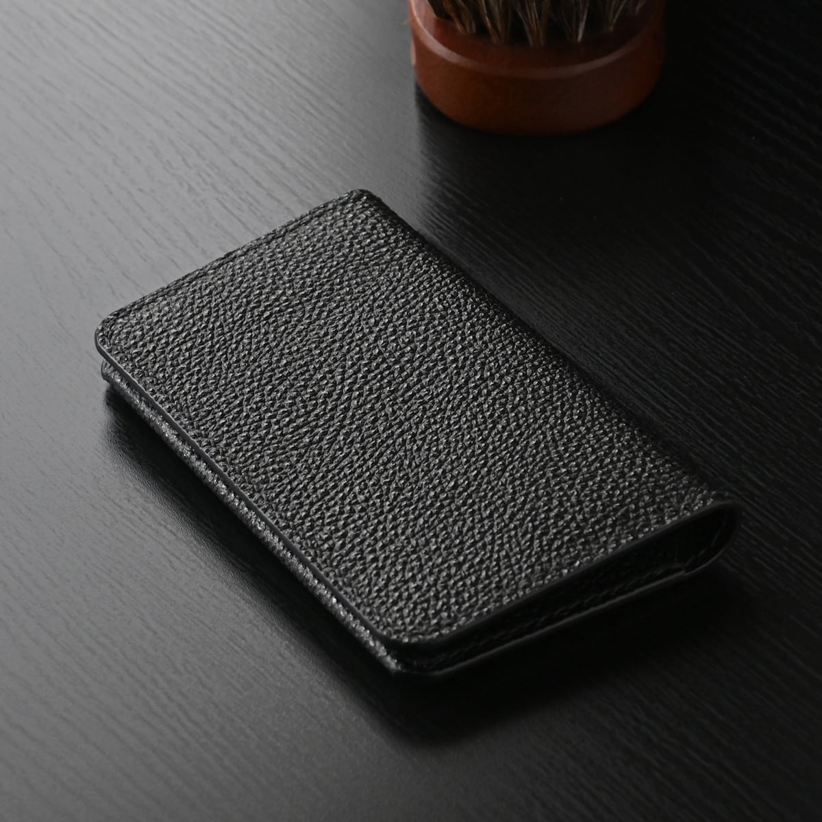 手縫い仕立ての名刺入れ / カードケース 黒桟革&フレンチカーフレザー ブラック&ブラック